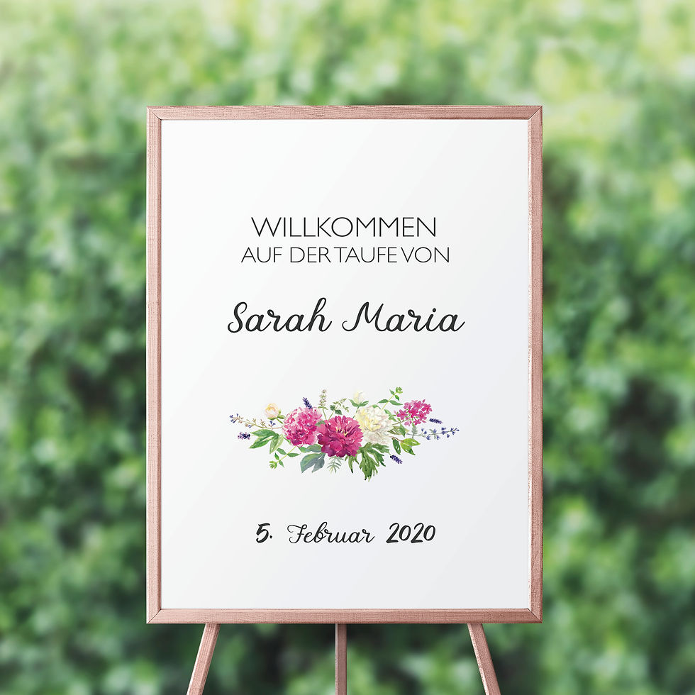 Begrüßungsschild, Brautpaar Name, Willkommensschild in rosa, Taufe Begrüßung